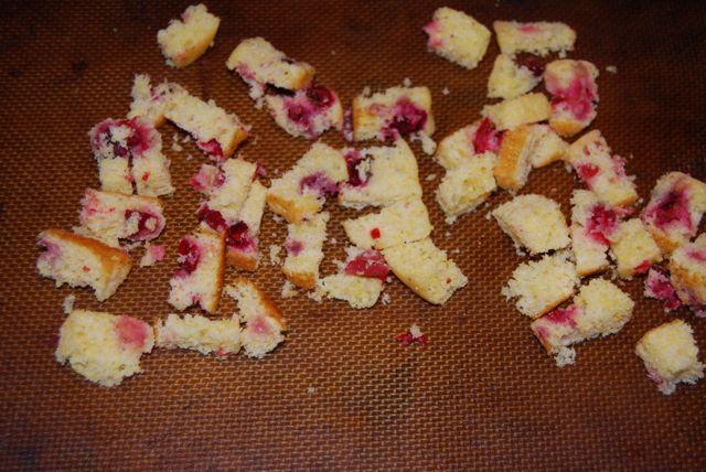 I chopped up two of my Cranberry Corn Muffins and put them in the oven as well.