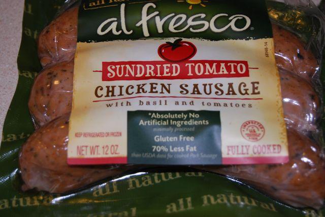 - 2 fully cooked chicken sausages, diced