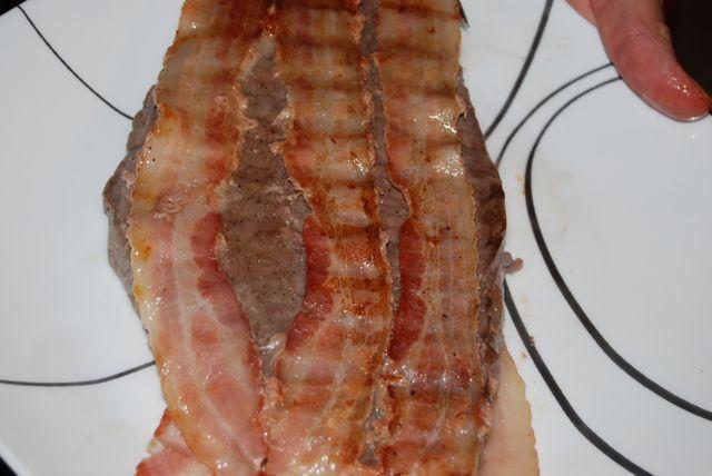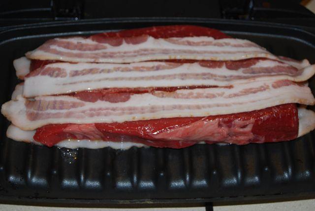 About this time, the hubby put his steak on the “grill”. He added some bacon for flavor and discarded it when it was done cooking.