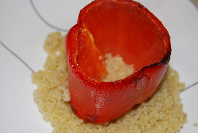 -Place ½ cup quinoa on each plate and top with peppers.