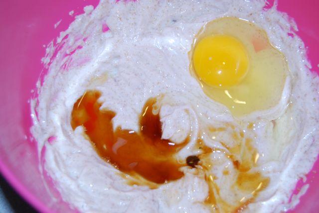 2) Add the egg and vanilla.