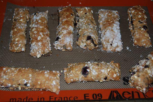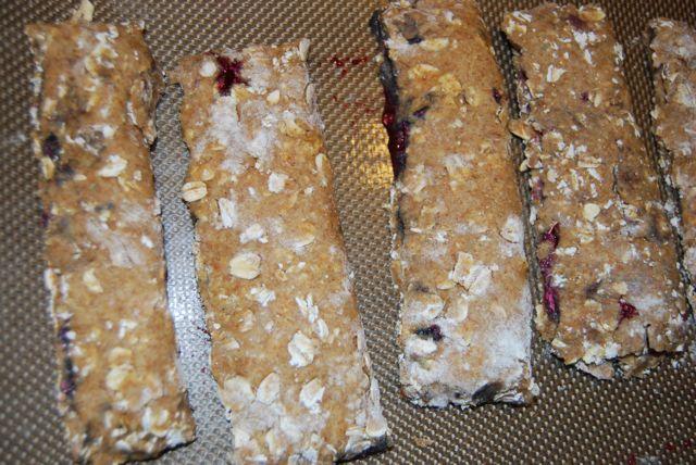 Freeze the dough for a little bit and then press it out into nutrigrain sized rectangles (Yes I’m aware that that’s not very precise…deal with it!) Use a knife to cut off the scraggly edges.