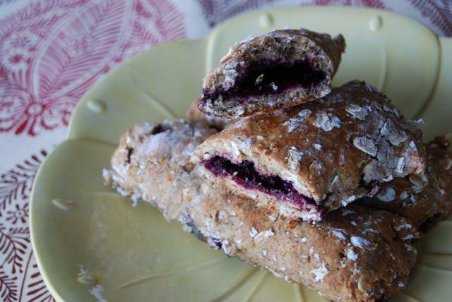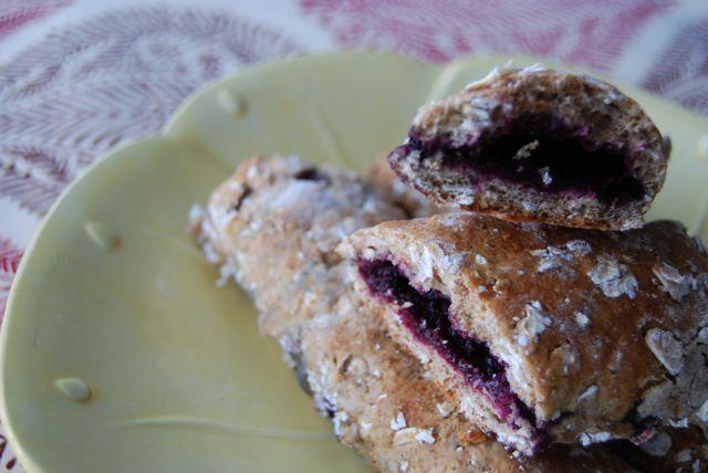 I made these yesterday and they turned out really good. I had some blackberry jam that I had over cooked and was too thick for spread on toast but it was perfect for this. It was also the only recipe that I could find without gobs of sugar. My 15 month old really enjoyed them and they were pretty easy to make. The dough had a similar consitancey to pie crust so anything you would add to keep it that consistencey I think would be fine. Infact even pie crust will jelly cooked in it would be pretty good huh, little mini pies yum.